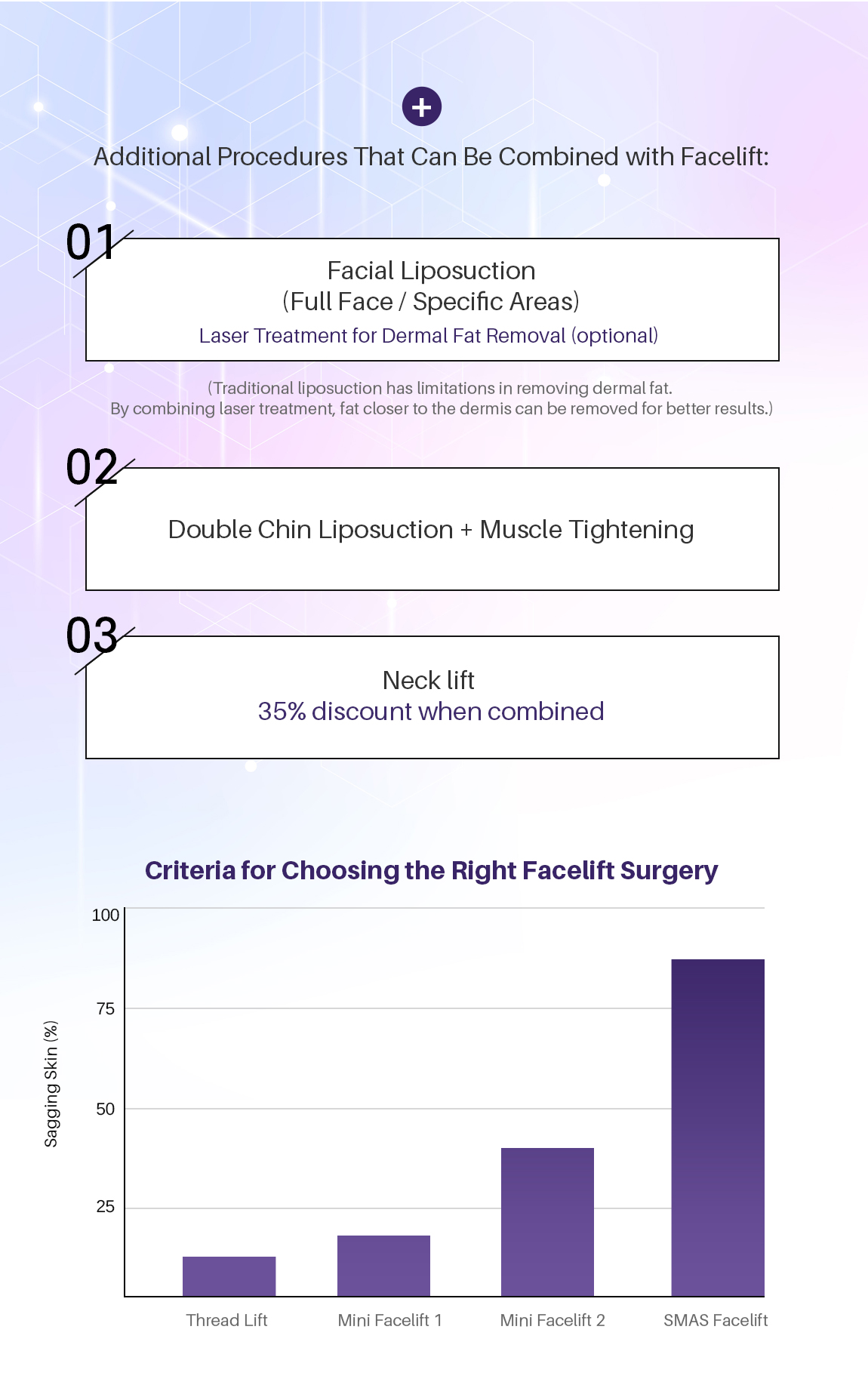 For a natural and firm lifting effect, it is crucial to effectively lift the SMAS (Superficial Musculoaponeurotic System) layer.