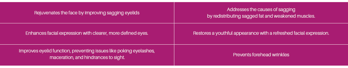 muscle but also redistributes extended eye muscles due to degraded eyelid to create natural double eyelids.