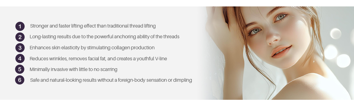 These threads not only lift sagging skin but also stimulate and maintain the elasticity of the skin tissues.