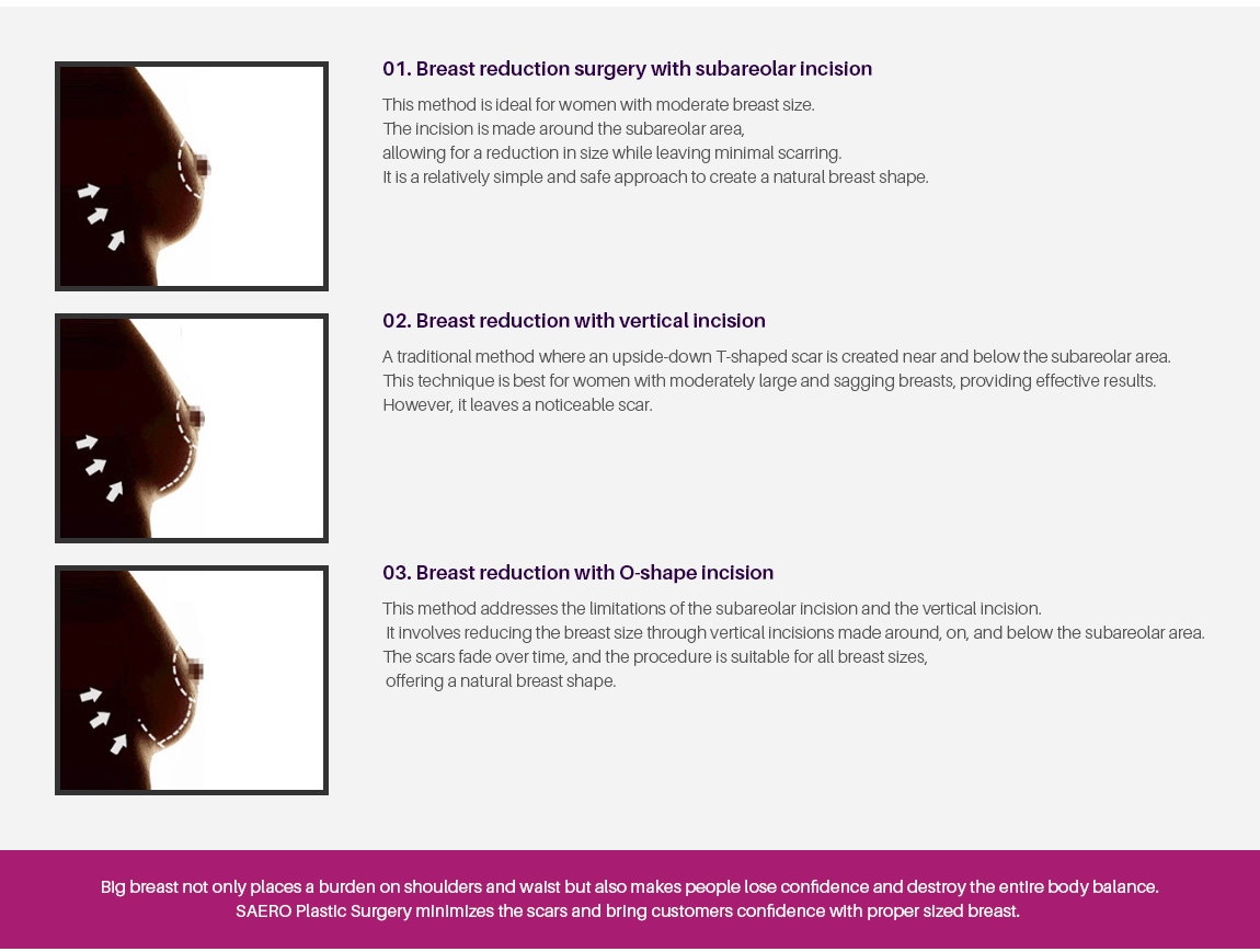 Breast reduction surgery is designed for women with excessively large breasts (typically over 400cc),