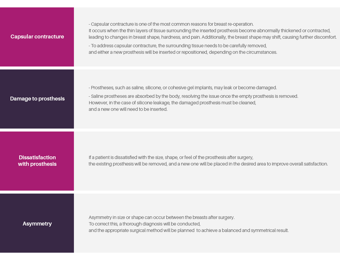 Breast re-operation is a more complex procedure performed when there are issues with the prosthesis or dissatisfaction with the previous surgery.