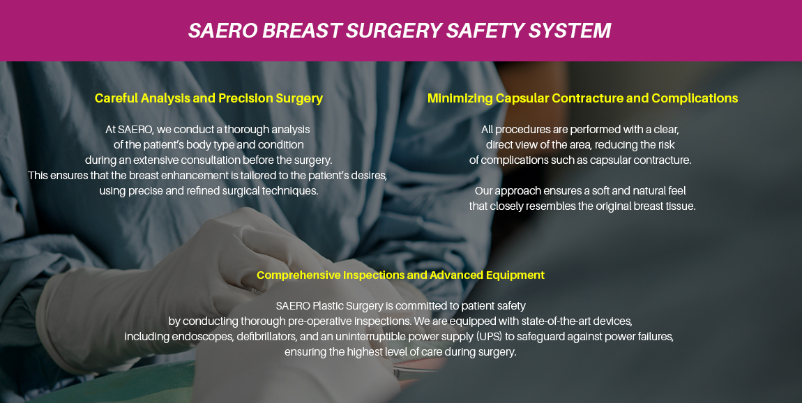 SAERO offers personalized breast enhancement options that cater to each individual’s body type, aesthetic preferences, and safety concerns,