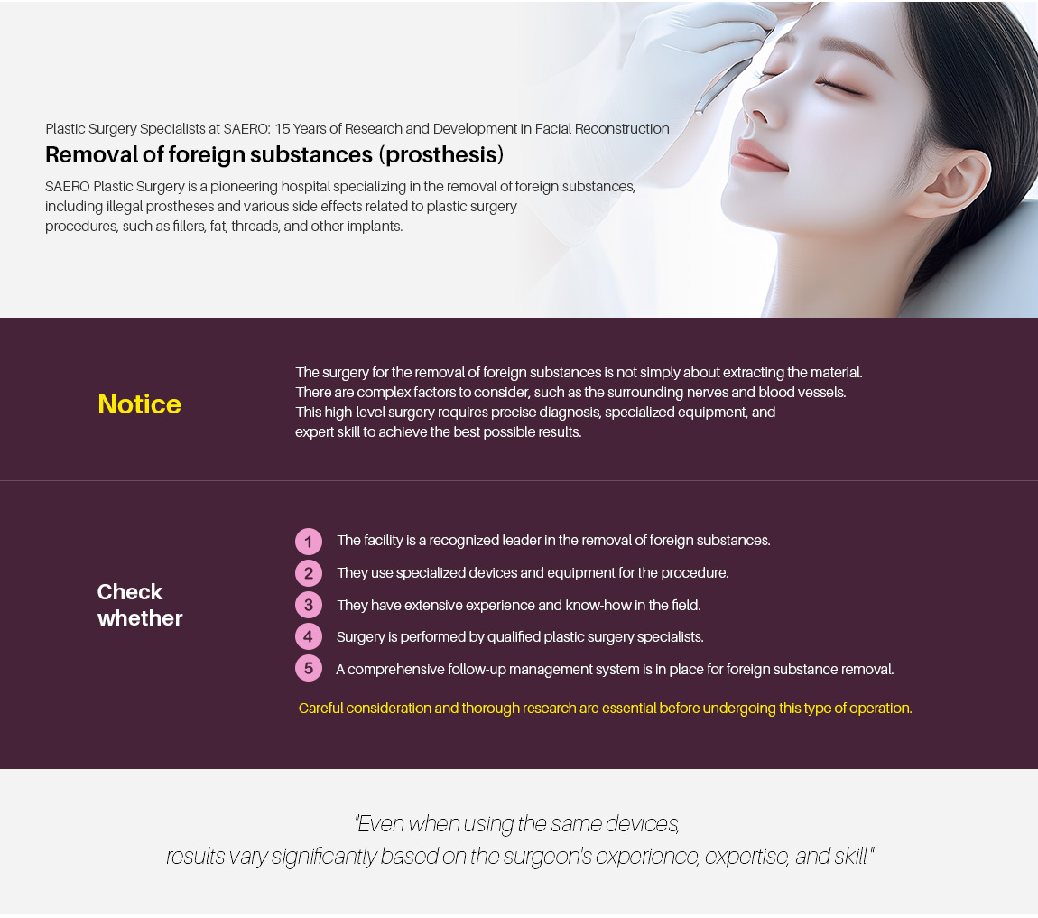 The removal of foreign substances at SAERO Plastic Surgery goes beyond simply extracting prostheses.