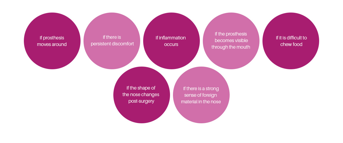 such as irregularities, movement of the prosthesis, or visible protrusions on the skin.