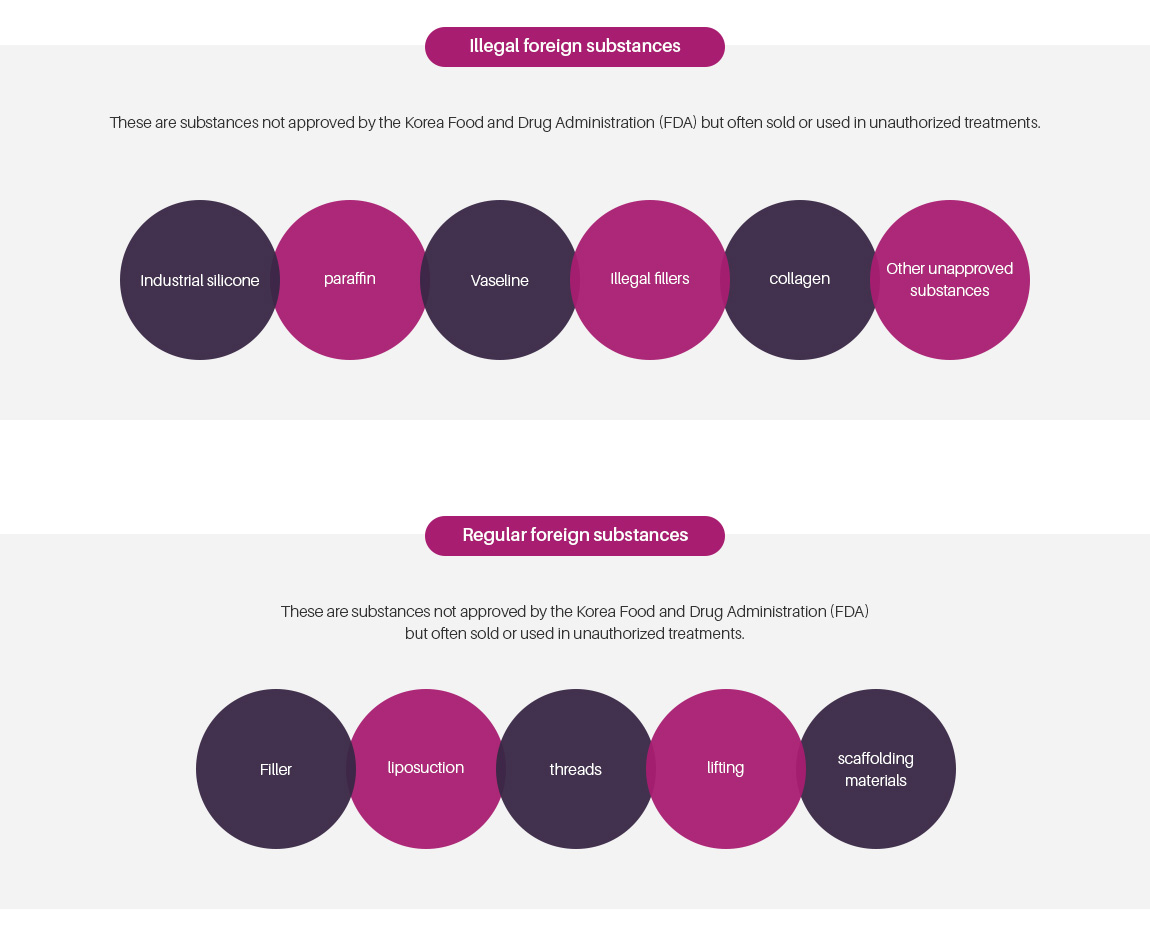 Representative foreign substances include illegal ingredients like paraffin, benzene, and industrial silicone,