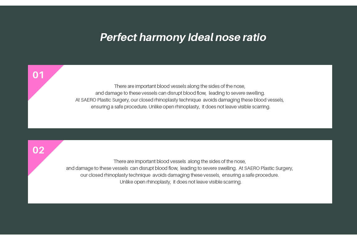 At SAERO Plastic Surgery, our closed rhinoplasty technique avoids damaging these blood vessels,