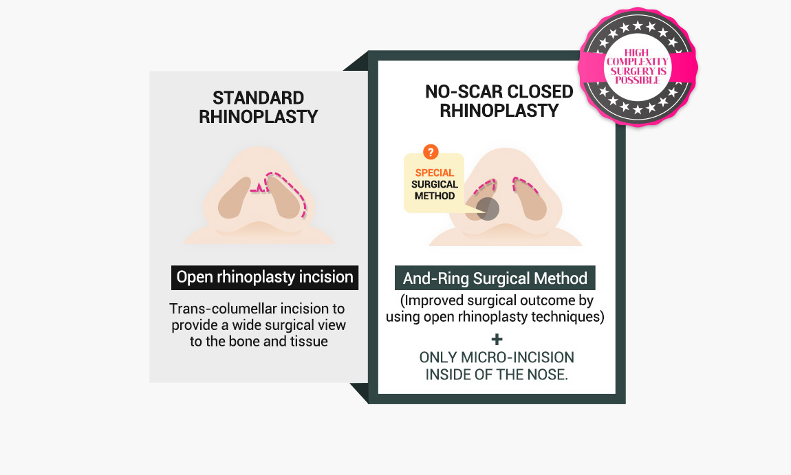 Closed rhinoplasty with “And-Ring” method is performed through a micro-incision and does not leave visible scars.